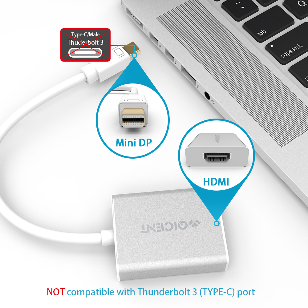 - IMPORTANT NOTE: NOT compatible with Thunderbolt 3 (TYPE-C) port; NOT a bi-directional adapter; NOT a ACTIVE adapter; A separate HDMI cable (sold separately) is required